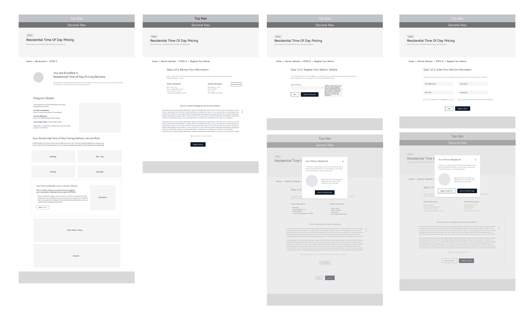 • Designed low-fidelity wireframes for multiple user flows, supporting key features like Time of Day rate enrollment and EV credit registration.